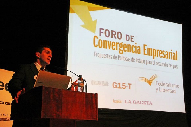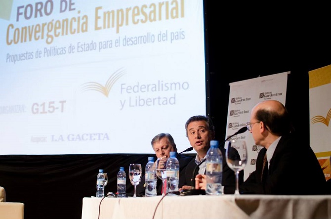 El foro realizado en el hotel Hilton Garden Inn de Tucumán, expresó el rechazo al intervencionismo estatal sobre las empresas y la necesidad de hallar una salida a la crisis de la deuda, en medio de una recesión económica. Lo expresaron los panelistas invitados: Luis Miguel Etchevehere (presidente de la Sociedad Rural Argentina), Jaime Campos (titular de AEA), Juan José Aranguren (presidente de Shell Argentina) y Cristiano Rattazzi (CEO de FIAT Argentina). Lo consolidó el jefe del Gobierno porteño, Mauricio Macri, en plena campaña hacia la presidencia. Pero, antes que todo, es fundamental que haya un cambio no sólo de la política, sino de la ciudadanía civil, tal como lo apuntó el padre José María di Paola, para combatir flagelos sociales como la pobreza y la drogadicción. Así transcurrió el panel de tres horas, moderado por Eduardo Braun y por el economista Gustavo Wallberg, Director de Políticas Publicas de Federalismo y Libertad.
